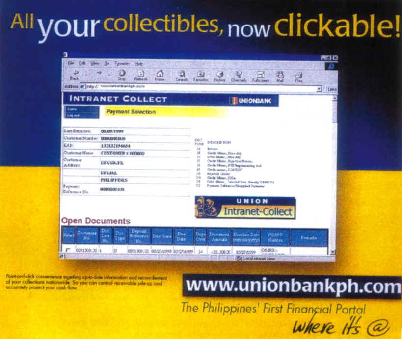 Union eipp (Electronic Invoice Presentment and Payment) is a secure online application that manages collections and disbursements between members of a private business community. It uses both the Internet and the Intranet technologies to process electronic payment instructions received from the Merchant’s Corporate Customers through a secure communication network. Users go through several levels of validation and only registered corporate entities will be able to log-on to the system. With this facility, the Merchant’s Corporate Customers will be able to view their outstanding payables online and initiate payments to the Merchant through online (electronic fund transfers) and/or offline (over-the-counter payments) mechanisms. Because UnionBank provides the infrastructure, the Merchant need not invest in web or EDI technology.